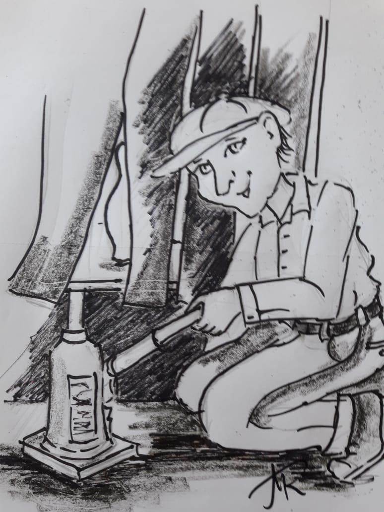 Caricatura "O Bolonista e o Macaco". Ilustração Margot Dal Ri Rost, para o projeto Relembrando Recreio Gramadense.