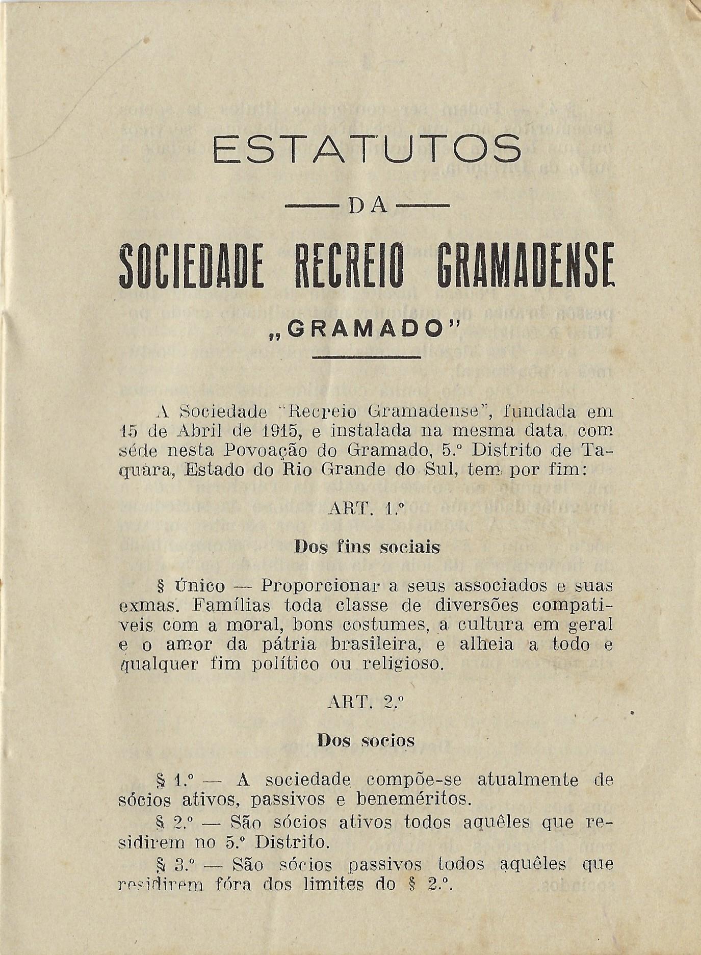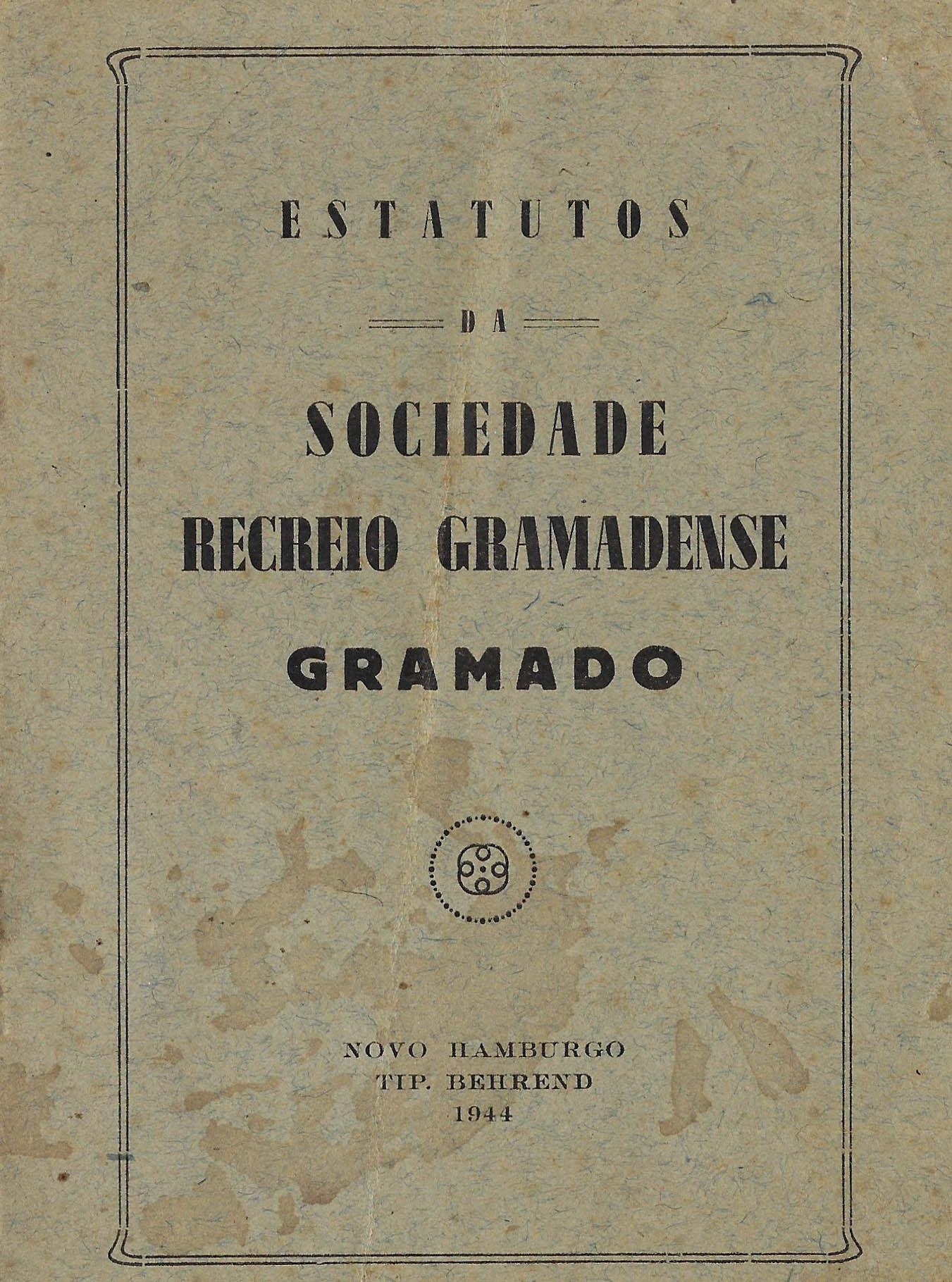 Capa Estatutos Sociedade Recreio Gramadense 1944. Acervo S.R.G.