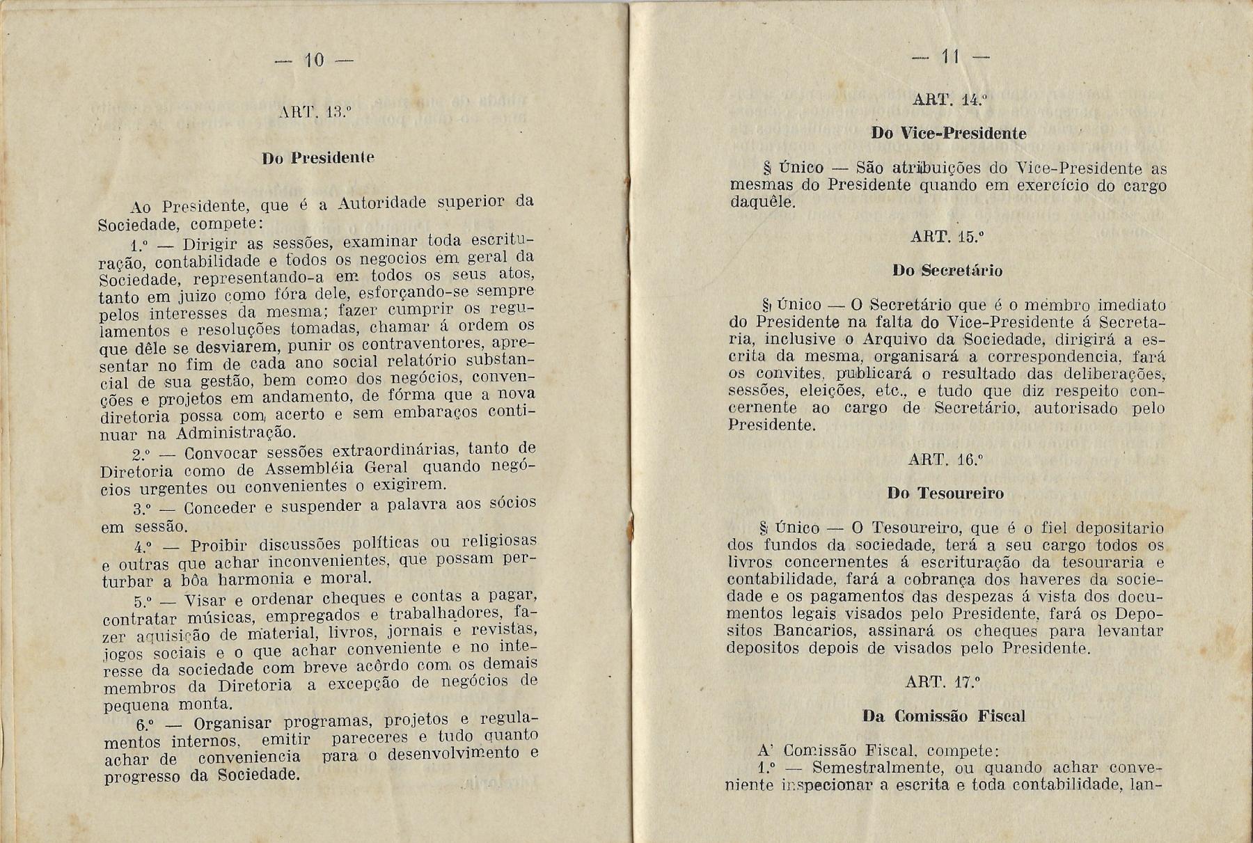 Páginas 10 e 11 Estatutos Sociedade Recreio Gramadense 1944. Acervo S.R.G.