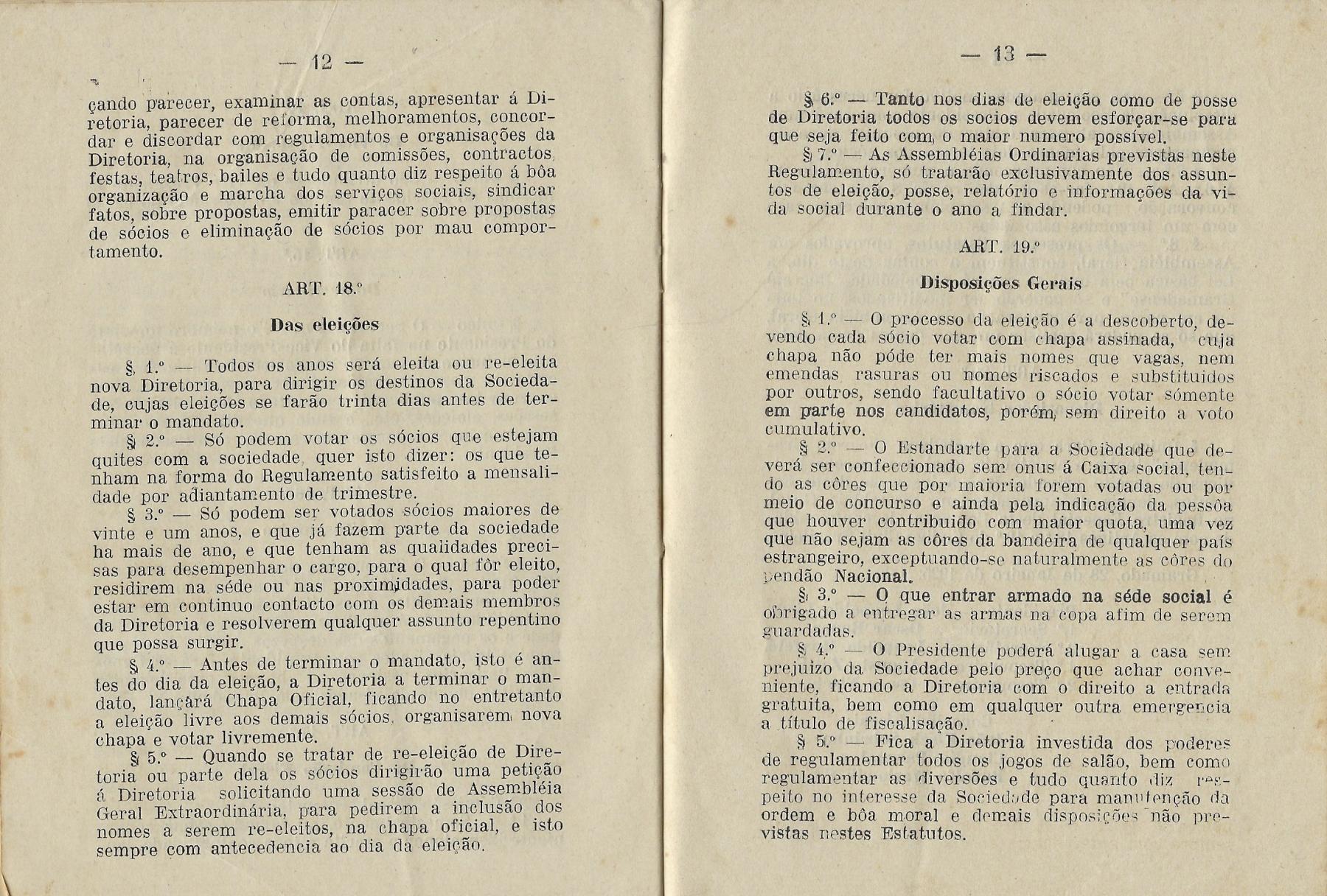 Páginas 12 e 13 Estatutos Sociedade Recreio Gramadense 1944. Acervo S.R.G.