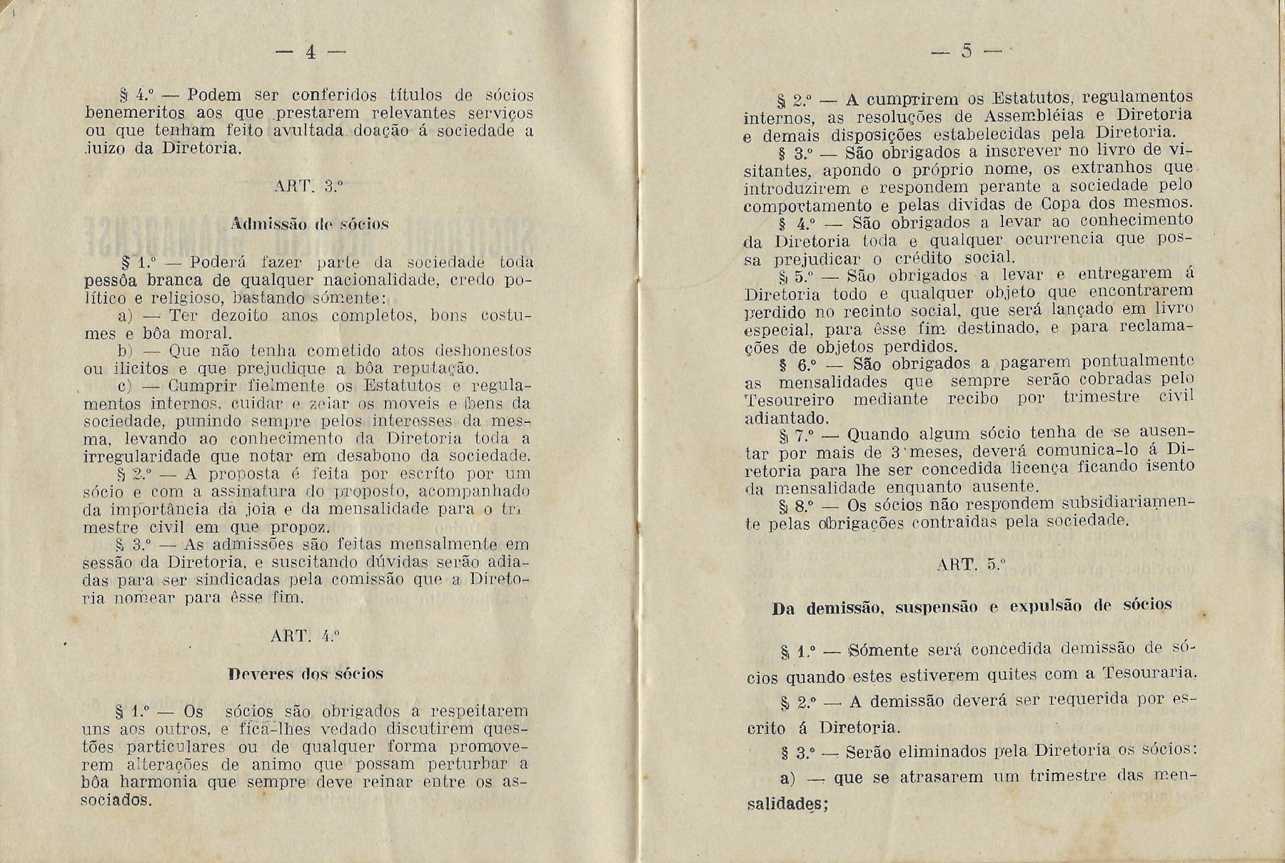 Páginas 4 e 5 Estatutos Sociedade Recreio Gramadense 1944. Acervo S.R.G.