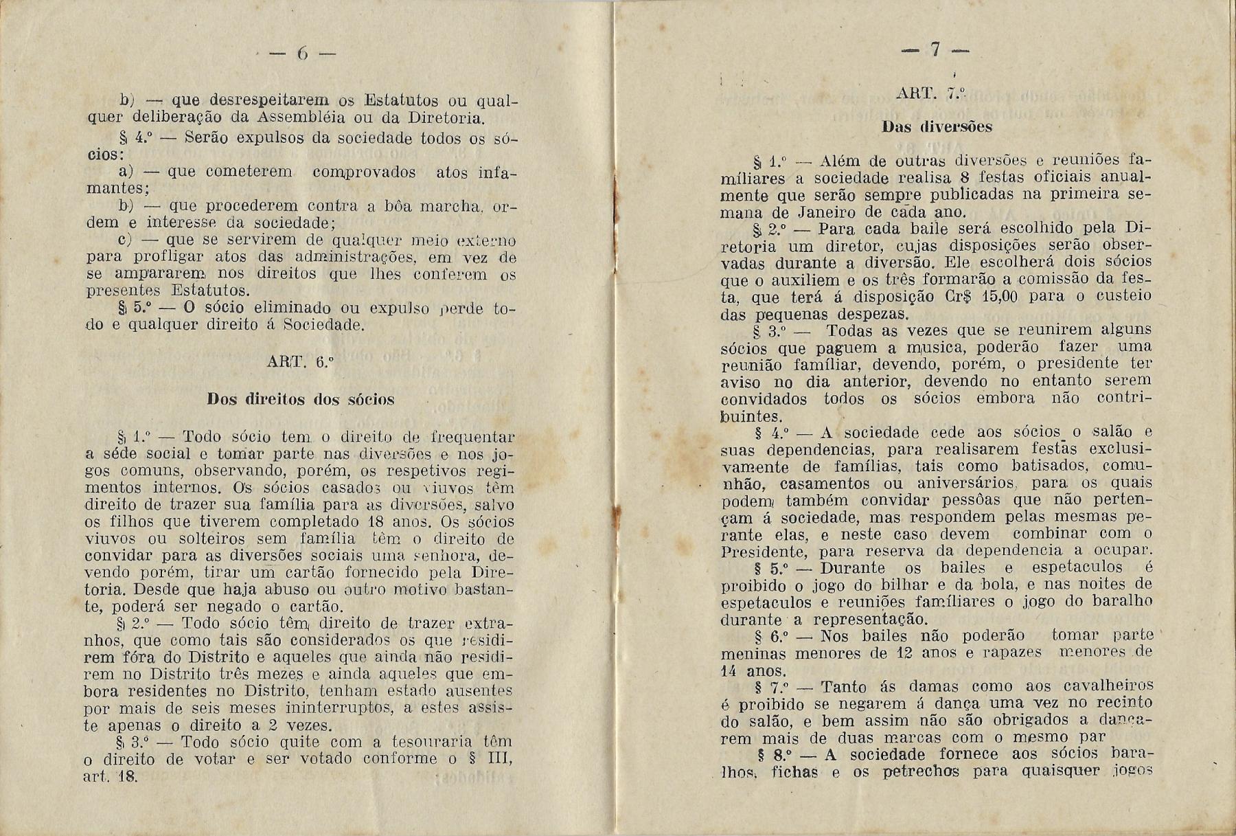 Páginas 6 e 7 Estatutos Sociedade Recreio Gramadense 1944. Acervo S.R.G.