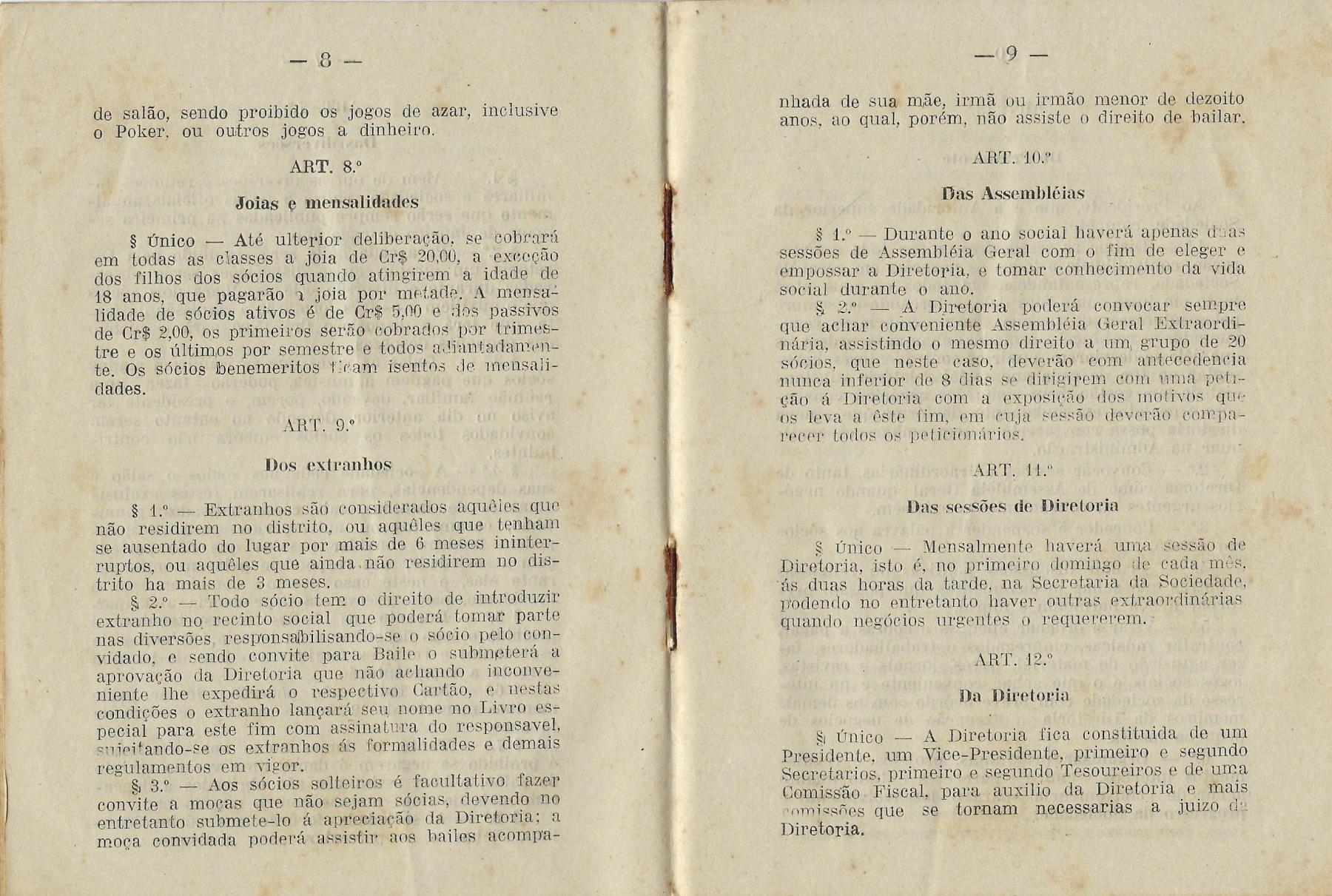 Páginas 8 e 9 Estatutos Sociedade Recreio Gramadense 1944. Acervo S.R.G.