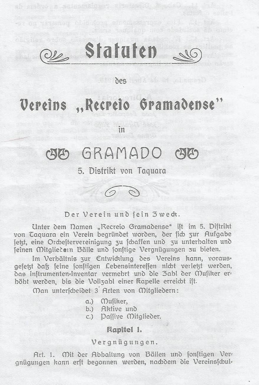 Estatutos Sociedade Recreio Gramadense 1915, versão em Alemão. Acervo S.R.G.