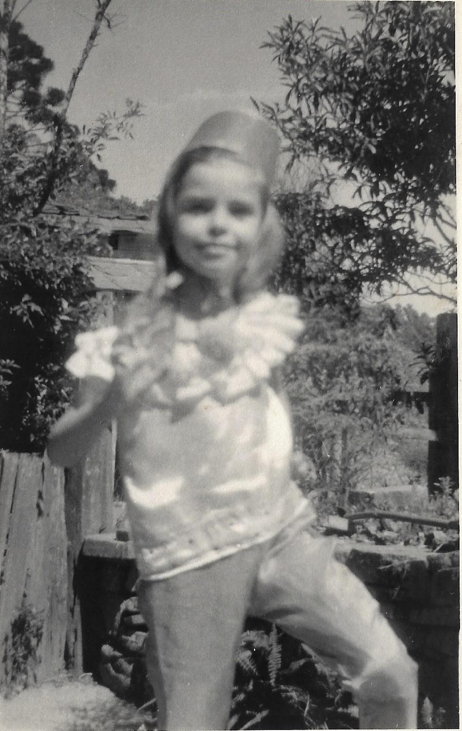 Sobre os bailes de carnaval infantil, conta que não faltava um. “Adorava as serpentinas coloridas, os confetes e sempre trazia um pacote para casa e fazia outro carnaval. Certa vez, minha tia foi a um baile de carnaval e me presenteou com um artefato carnavalesco, uma lanterna japonesa feita de papel de seda colorido que enfeitava as mesas quando eu tinha uns 7 anos. Lembro que eu abria e fechava com muita delicadeza. Encantada, o tenho até hoje comigo pois assim se guardam momentos. Outro ano ela trouxe uma latinha verde que aspergia perfume e confetes”.