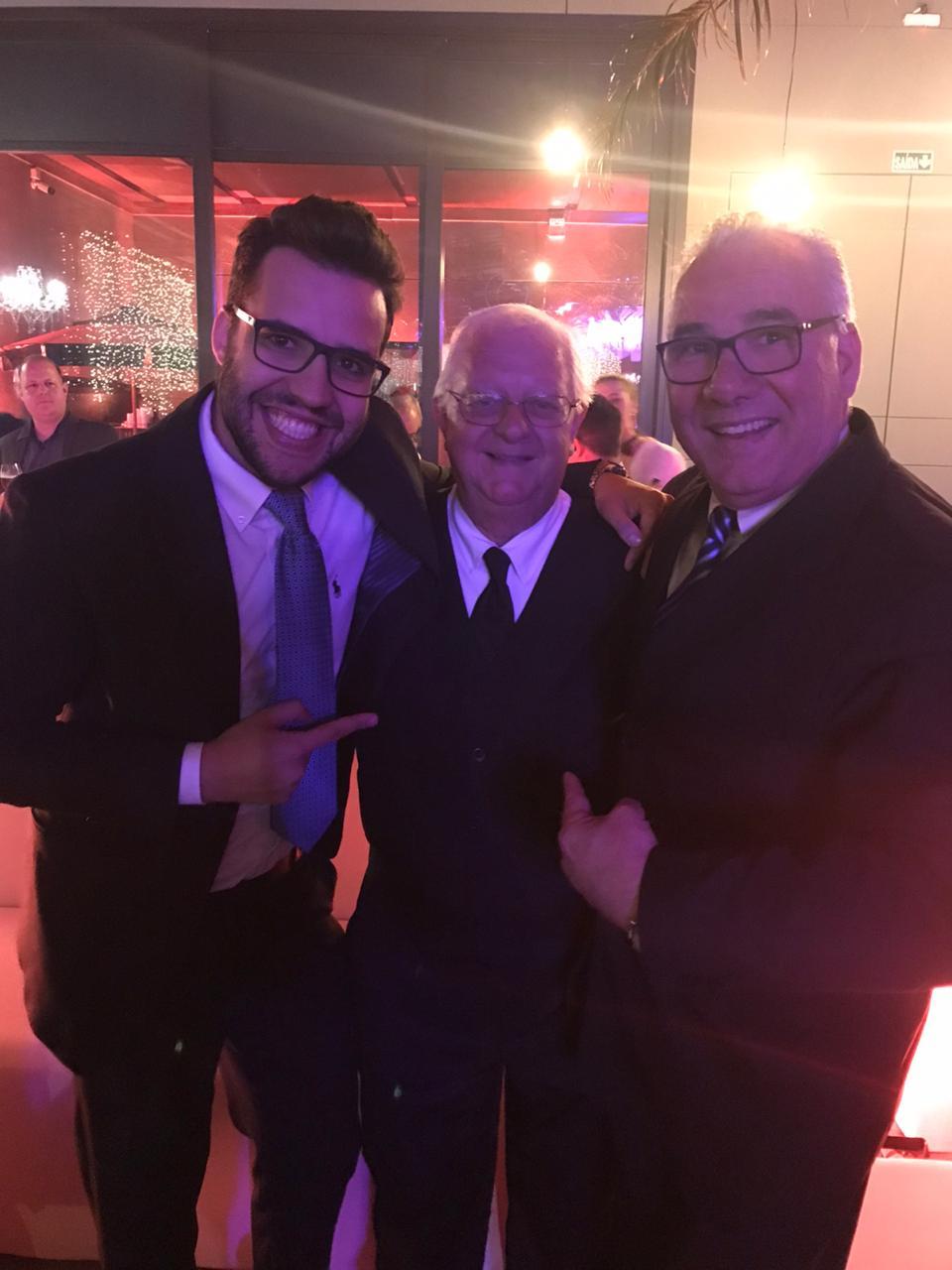João e Lucas Benetti com o sr. Pedrinho, tradicional garçom nos eventos na Recreio. Foto: arquivo pessoal