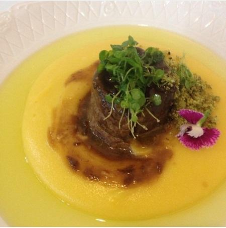 Filet Recheado com brie, cogumelos ao shoyu, farofa de erva mate e mousseline de mandioquinha. Foto Iriu's Gastronomia.